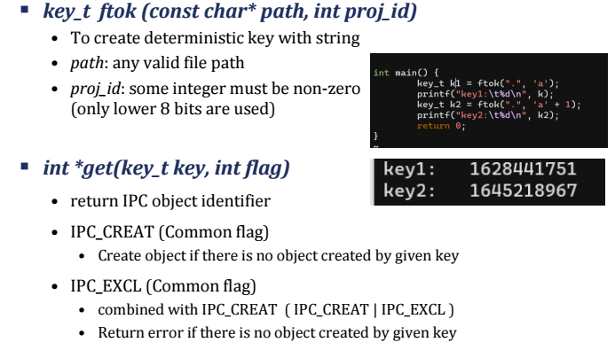 - IPC_EXCL : 이미 존재하는 키면 오류 발생