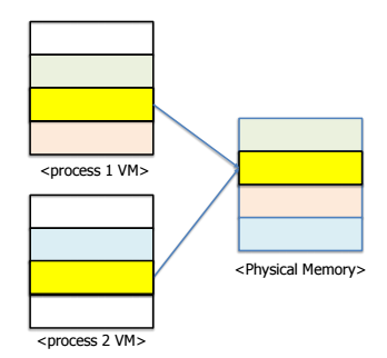 - 같은 메모리 공간을 두 개 이상의 프로세스가 공유하는 것