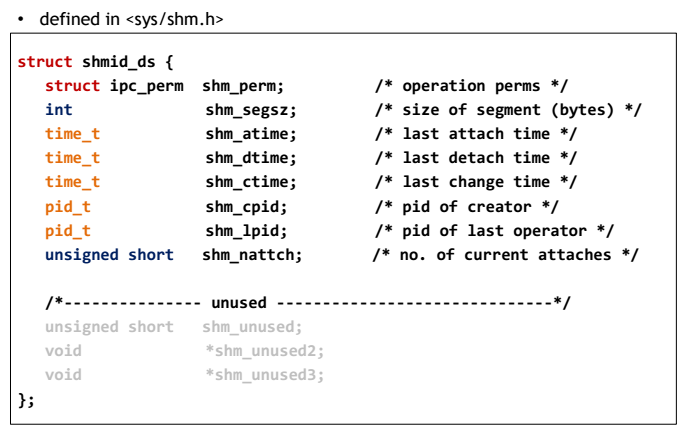 - 공유 메모리 식별자를 리턴(shmid_ds 구조체)