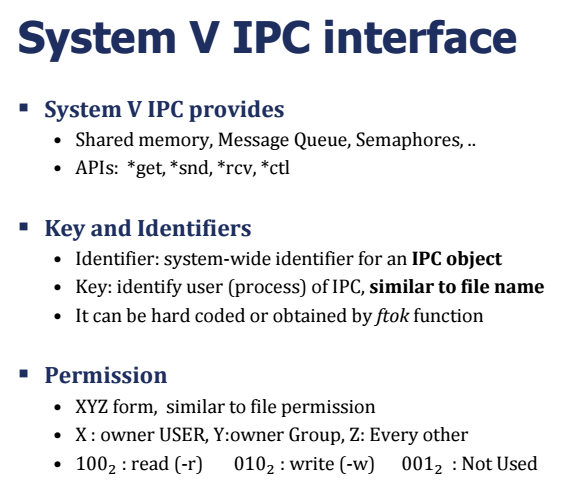 - System V IPC interface